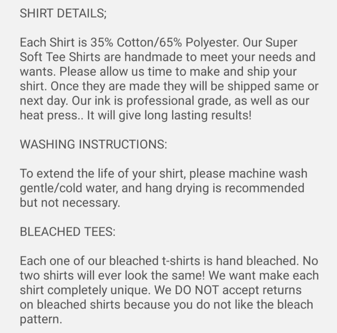 Current Turnaround Time for Bleached Shirts is 7-15 business days.