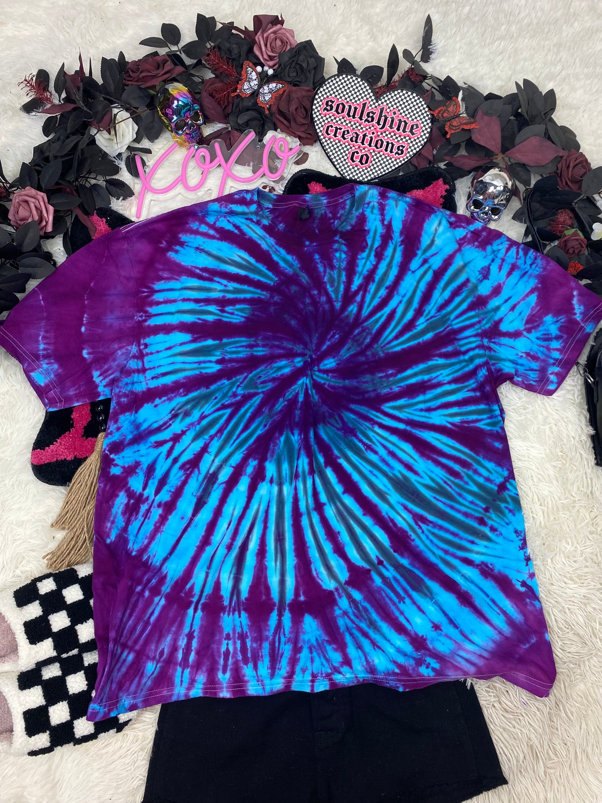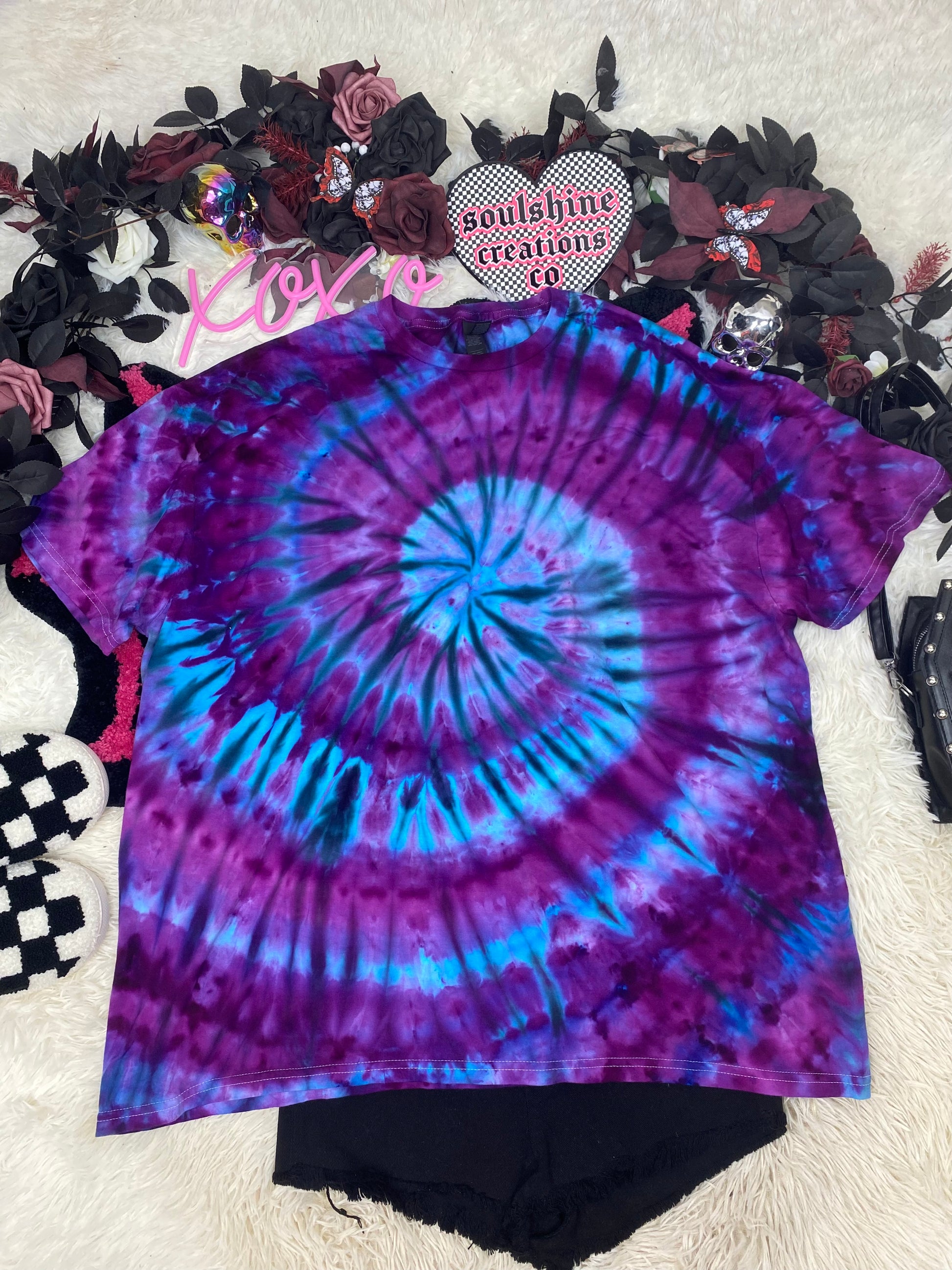 PLEASE NOTICE THAT TIE DYEING IS AN UNPREDICTABLE PROCESS. NO TWO PIECES WILL BE EXACTLY THE SAME. PLEASE EMBRACE THE UNIQUENESS OF EACH HAND DYED PIECE.