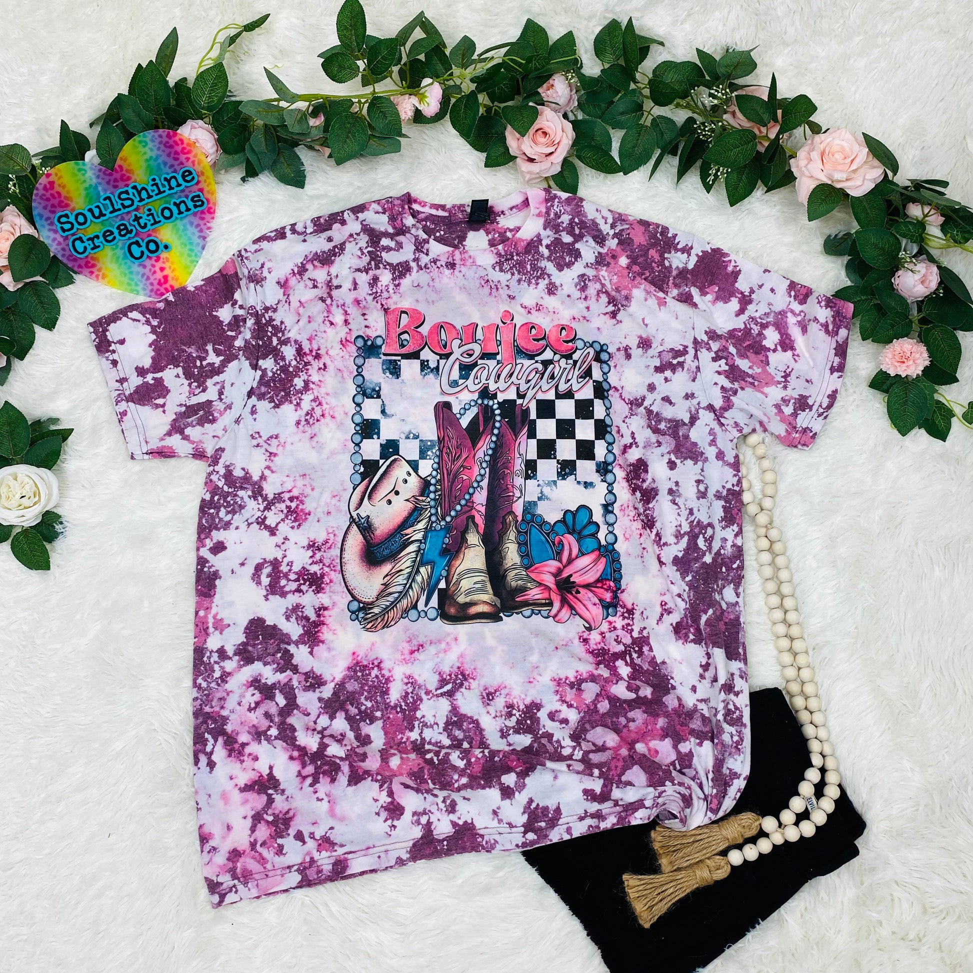 Boujee Cowgirl Acid Wash Bleached Shirt