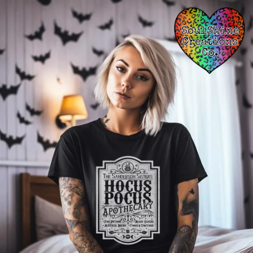 This is for a Hocus Pocus Apothecary Distressed Plastisol Ink Screen Print Transfer. (White Ink)