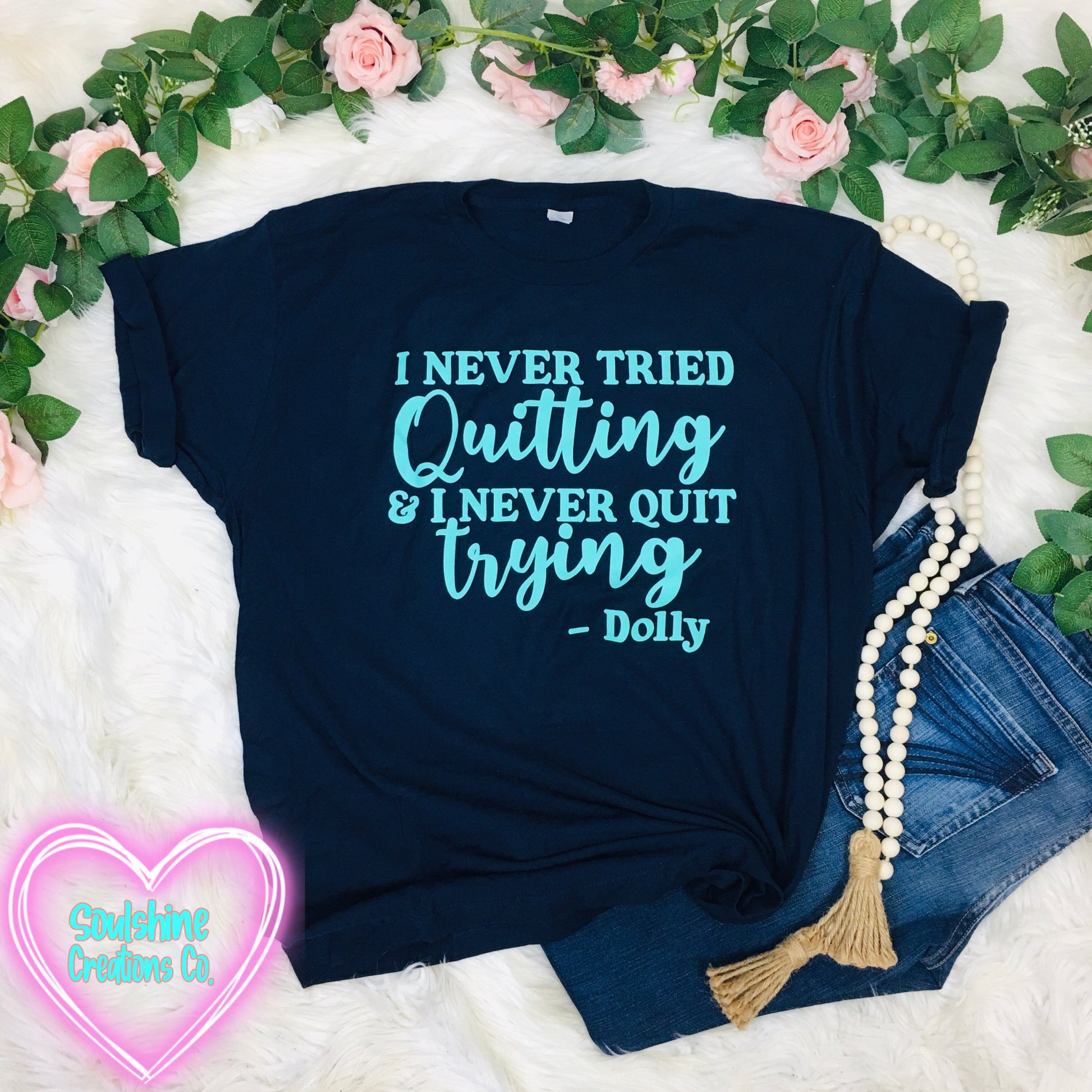 I Never Tried Quitting & I Never Quit Trying Dolly Shirt size XL