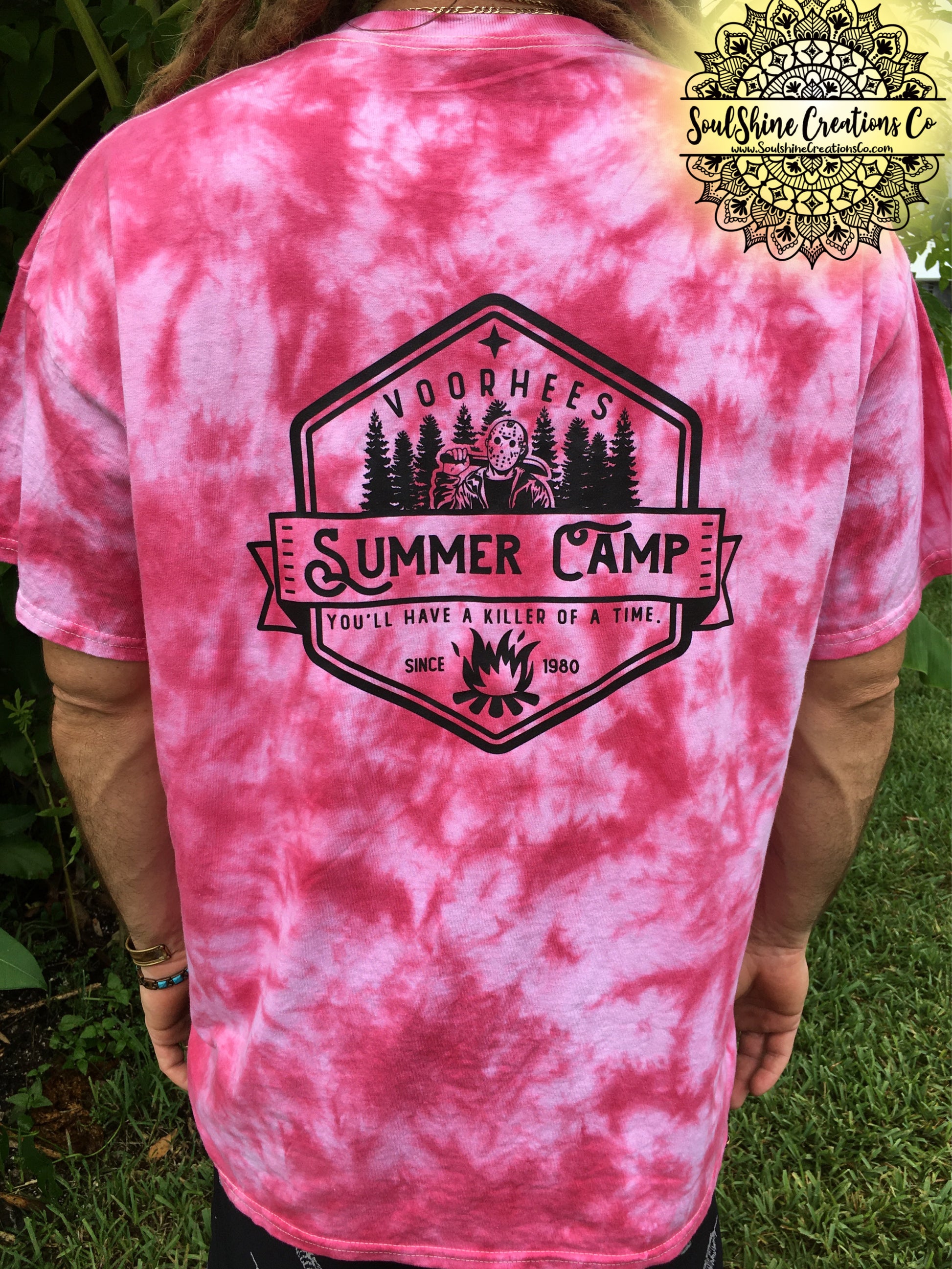 Each shirt is made on a quality unisex tee with a unique tie dying process and screen prints are applied using a professional grade heat-press for permanent, and lasting design.