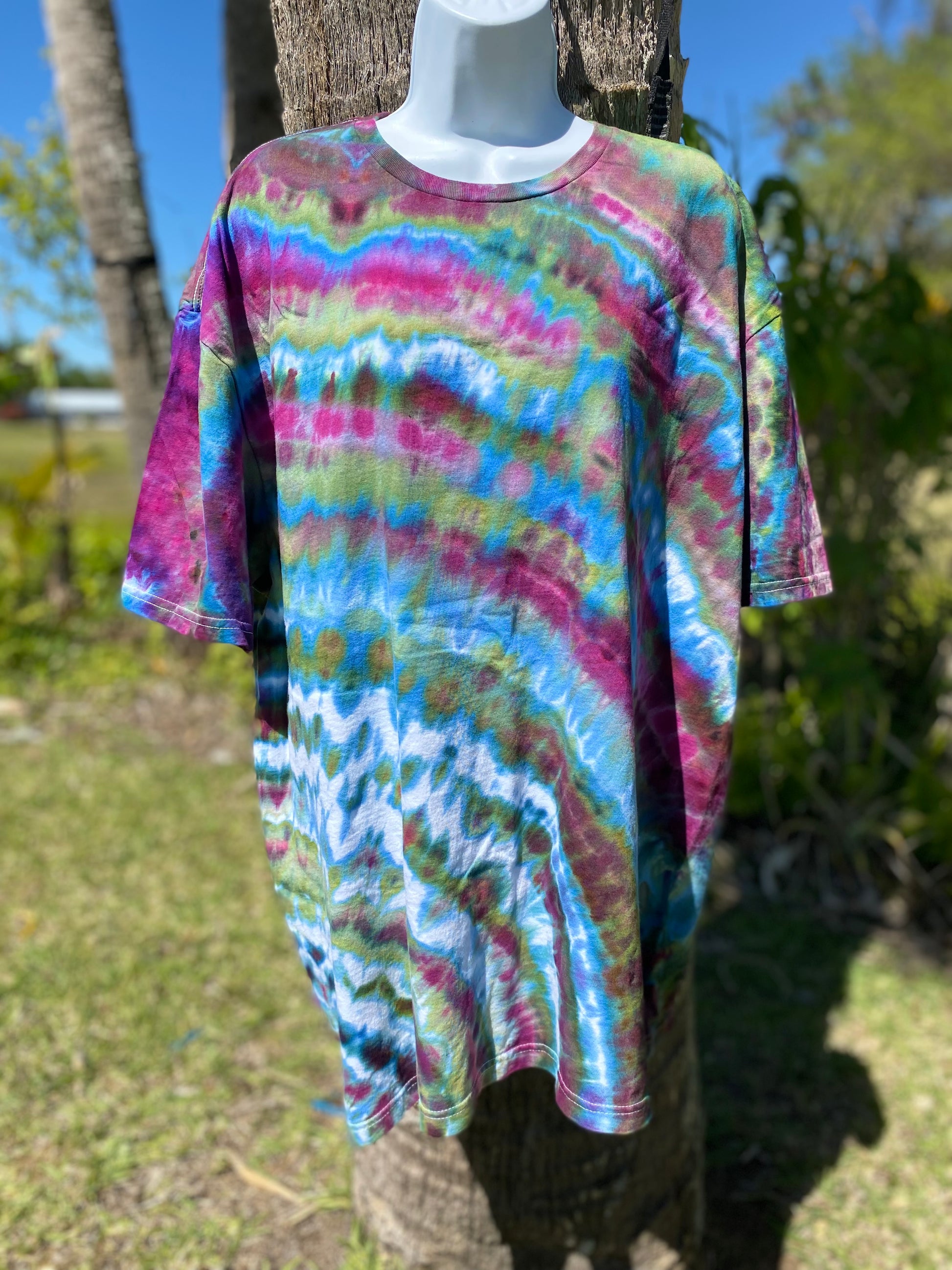 PLEASE NOTICE THAT TIE DYEING IS AN UNPREDICTABLE PROCESS. NO TWO PIECES WILL BE EXACTLY THE SAME. PLEASE EMBRACE THE UNIQUENESS OF EACH HAND DYED PIECE.