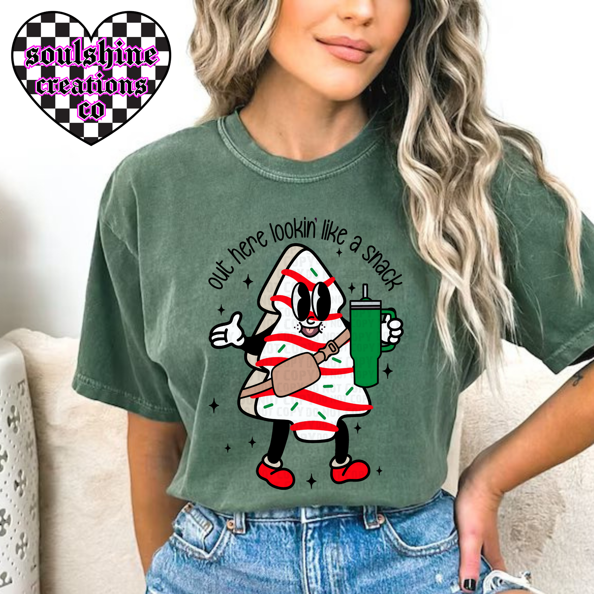 out here lookin like a snack christmas tree cakes tee or sweater