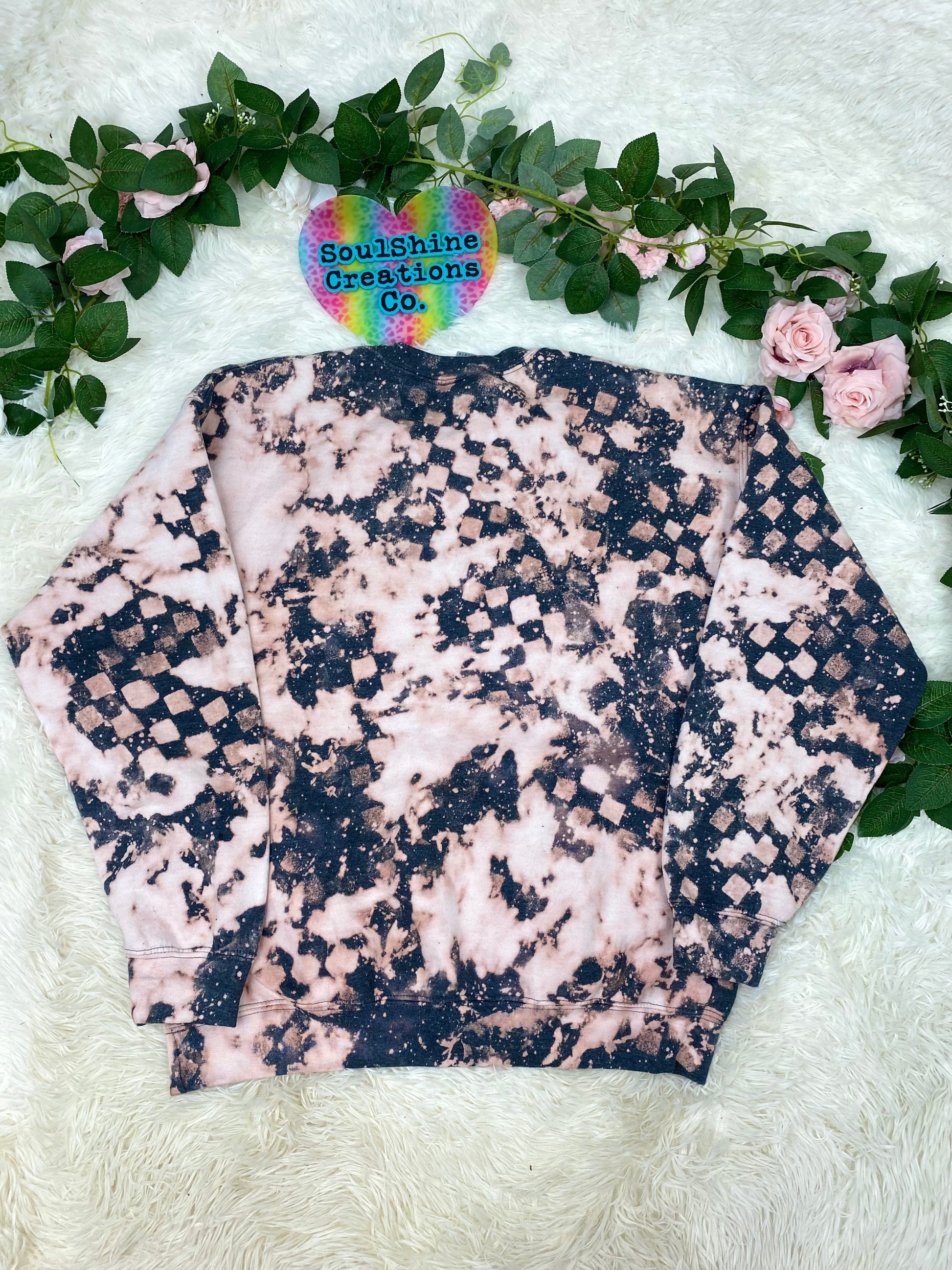 Retro 90’s Ghost Checkered Acid Wash Grunge Bleached Sweatshirt