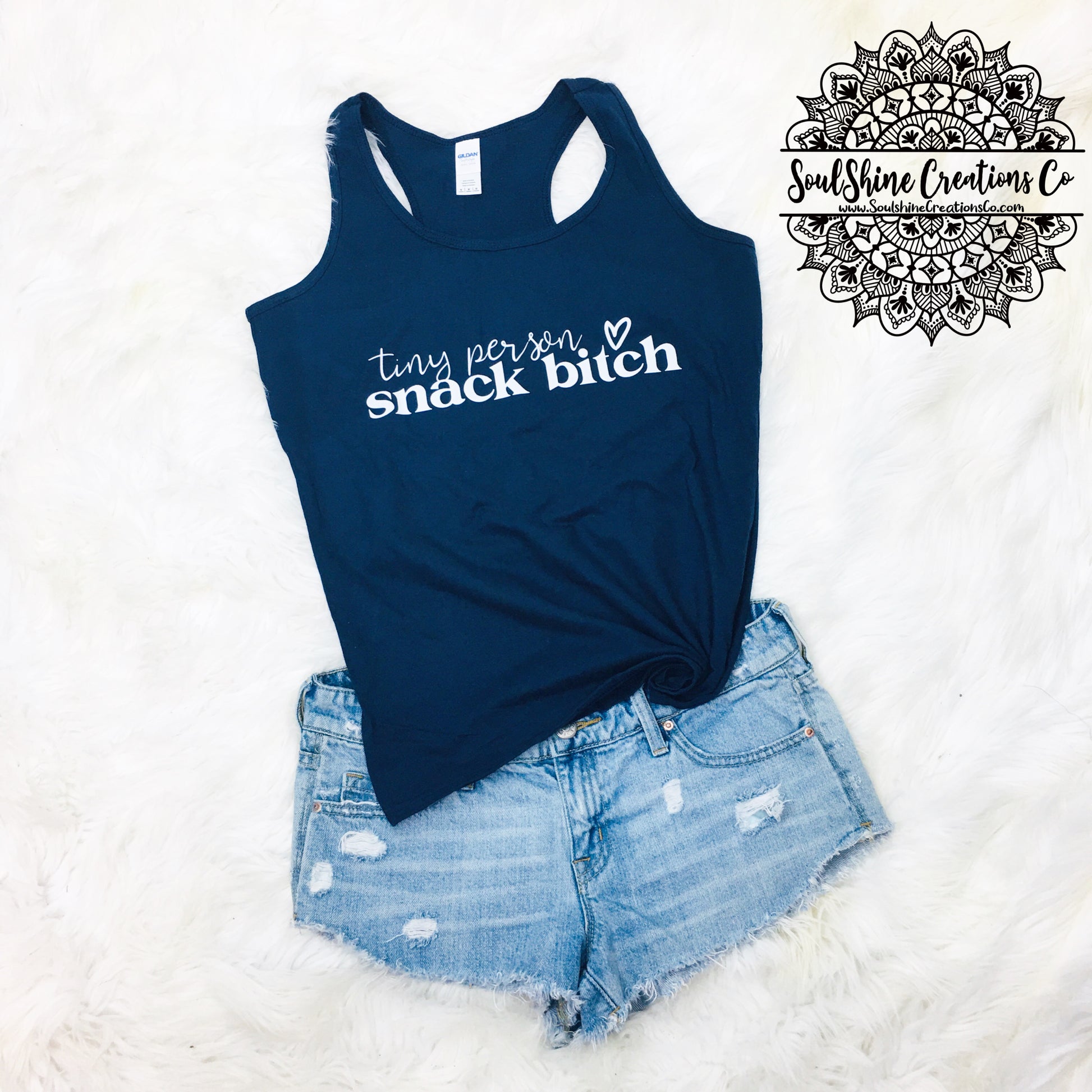 Tiny Person Snack Bitch Racerback Tank Top- (Color of shirt in photo is Navy, for reference)